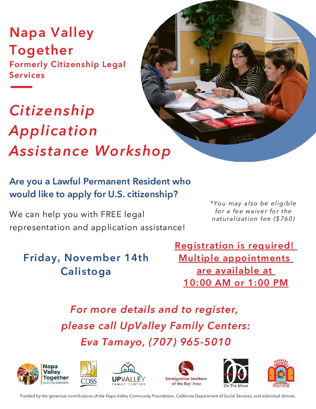 Friday, November 14th – Calistoga. Registration is required! Multiple appointments are available at 10:00 AM or 1:00 PM.